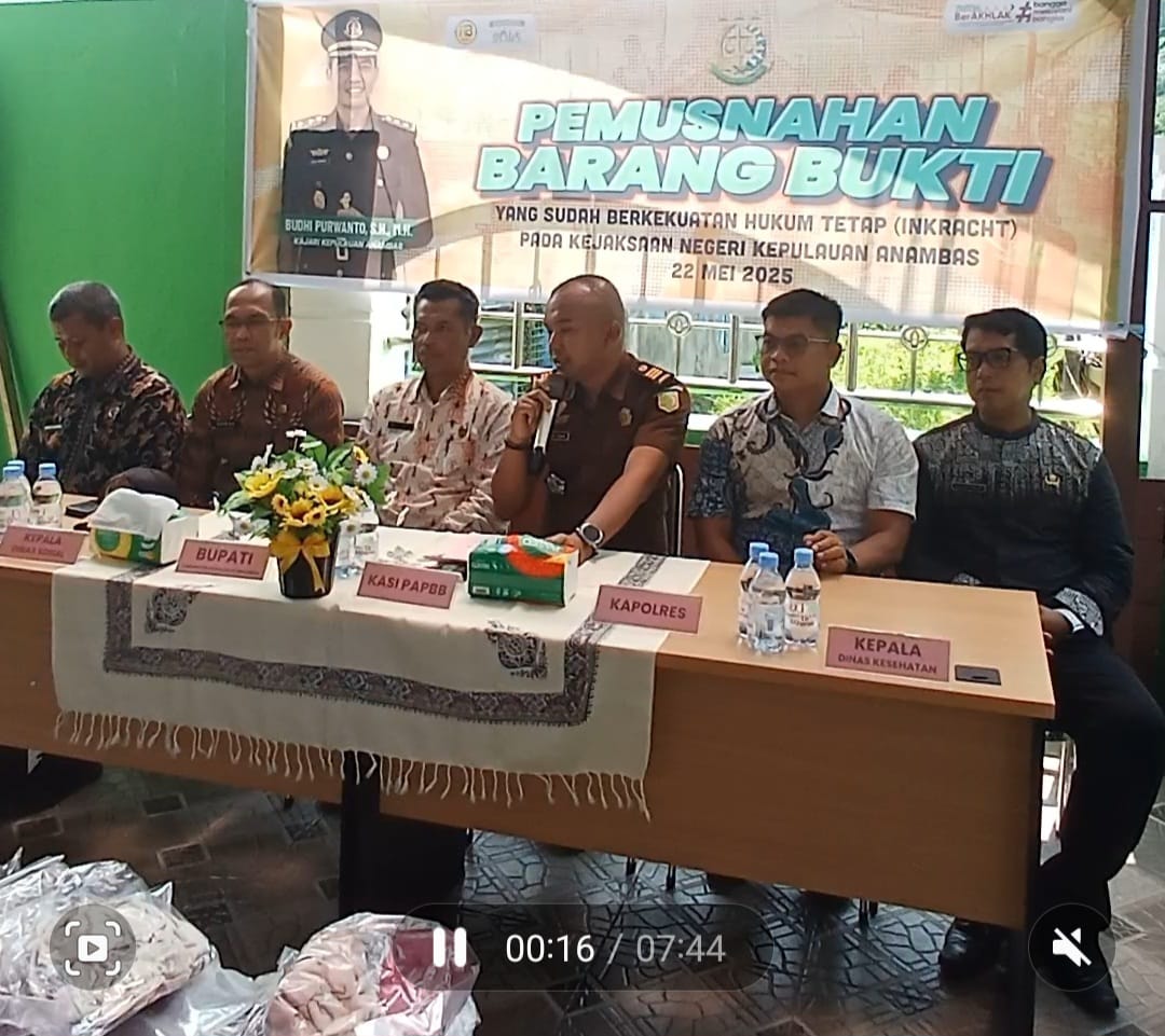 ANAMBAS, Anambaspos.co.id – Kejaksaan Negeri (Kejari) Kepulauan Anambas melakukan pemusnahan 14 jenis barang bukti dari tujuh perkara yang telah memiliki kekuatan hukum tetap (inkracht). Kegiatan ini dilaksanakan pada Kamis, 22 Mei 2025, di halaman Kantor Kejari Anambas.