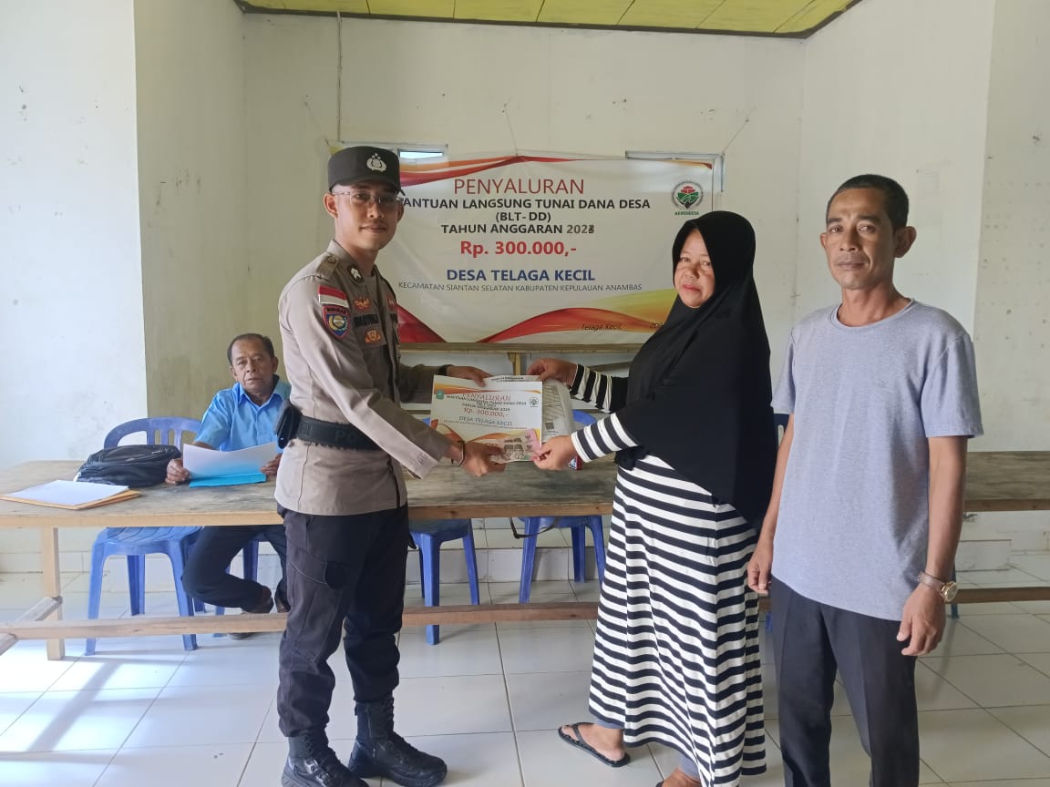 ANAMBASPOS.COM, Siantan Selatan – Bhabinkamtibmas, Briptu Wahyudi P yang bertugas di Desa Telaga Kecil khususnya wilayah Kecamatan Siantan Selatan hadir dalam kegiatan penyaluran Bantuan Langsung Tunai Dana Desa (BLT DD) wilayah binaanya.