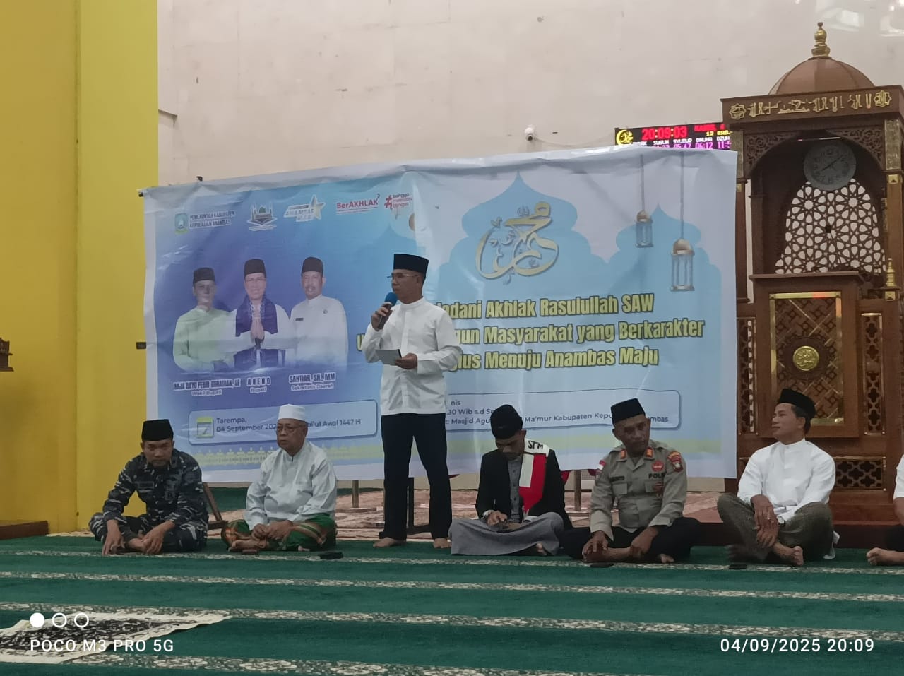 ANAMBAS, Anambaspos.co.id Pemerintah Kabupaten Kepulauan Anambas menggelar Peringatan Maulid Nabi Muhammad SAW, di Masjid Agung Baitul Makmur, Tarempa, Kabupaten Anambas, Kamis (04/09/2025) Malam.