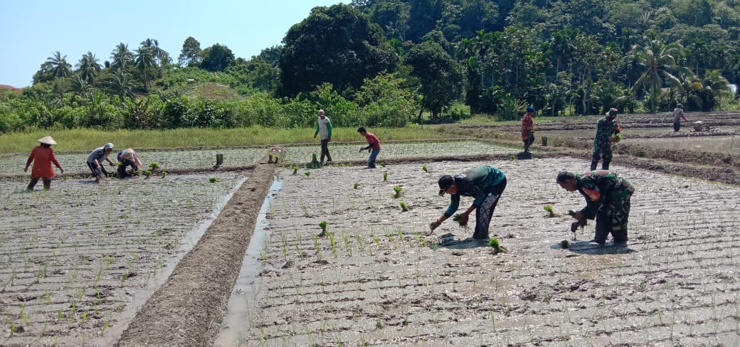 Saat berlangsungnya kegiatan tanam padi di Desa Bukit Padi