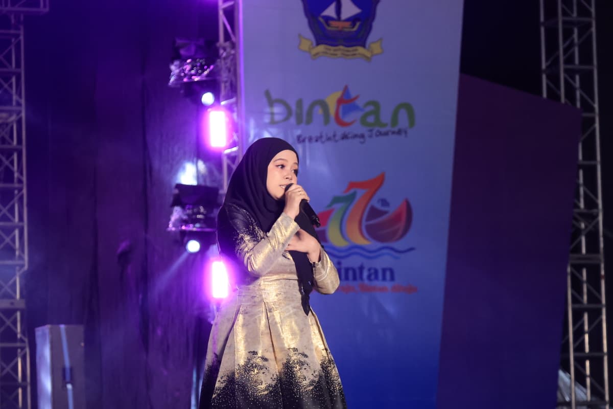 Kiki LIDA saat membuka panggung malam puncak Hut Pemkab Bintan ke 77 di pelataran Sevenland Tanjung.