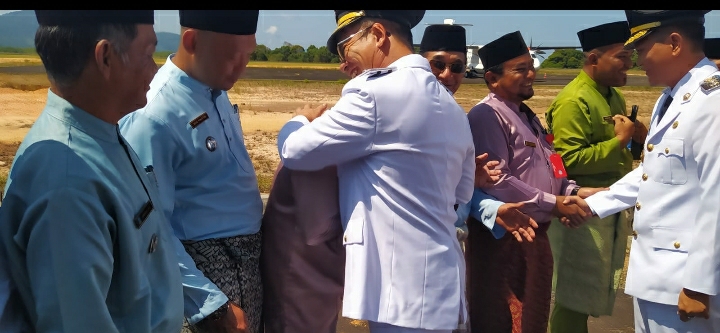 Segenap Unsur Pimpinan Kecamatan (Uspika) dari tiga kecamatan se-Pulau Jemaja berkumpul di Bandara Letung untuk menyambut kedatangan kepala daerah ke tiga kabupaten dengan semboyan Kayuh Serentak Langkah Sepijak itu.