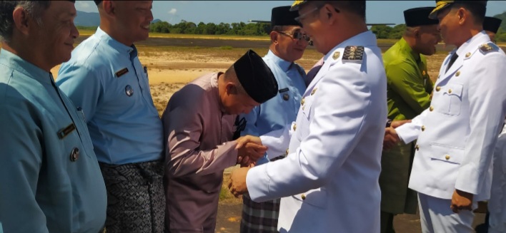 Kades Air Biru ketika menjabat tangan dan menunduk memberikan penghormatan kepada Bupati Kepulauan Anambas, Rabu (05/03/2025).
