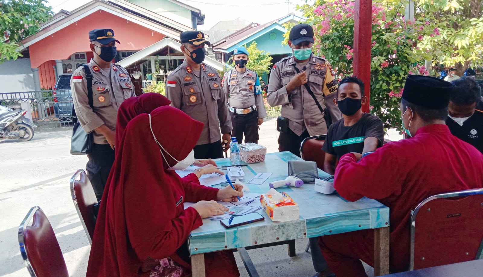 Kapolres Kepulauan Anambas, AKBP Syafrudin Semidang Sakti. S.I.K (tengah) saat meninjau langsung pelaksanaan Gerai Vaksinasi di Polsek Jemaja