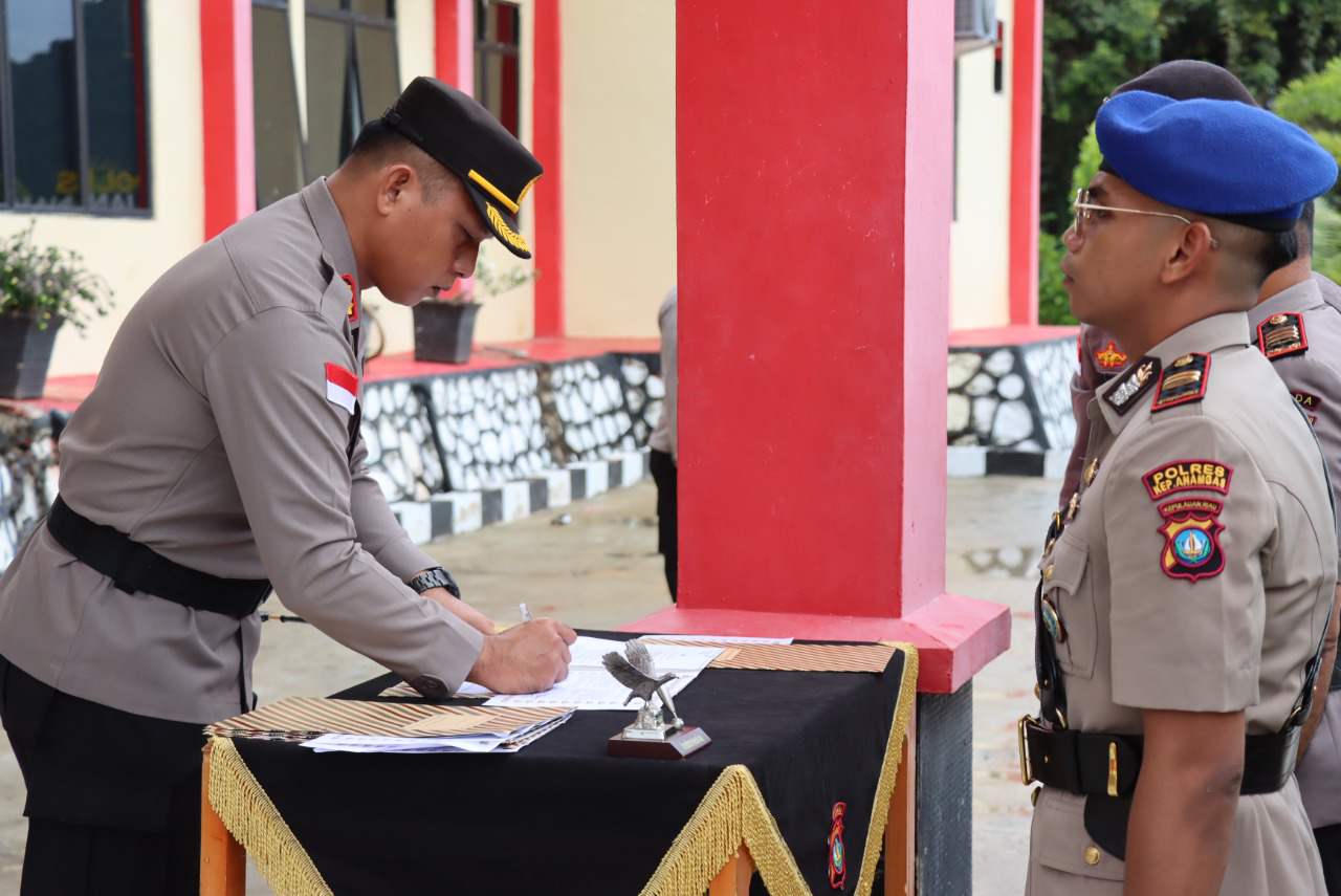 Tujuh pejabat utama Polres Kepulauan Anambas yang melaksanakan Sertijab diantaranya Kabag Ren dari AKP Jaka Bintara kepada AKP Nuryamsi, Kabag Log AKP Sumarno, Kasat Reskrim dari AKP Rifi Hamdani Sitohang, S.Sos kepada Iptu Rio Ardian, S.H, Kasat Intel dari AKP Mudjiono kepada Ipda Christian Nicholaus Tampubolon, S.H, Kasat Polairud dari AKP Martias kepada Iptu Gayuh Pambudi Utomo, S.Trk, Kasat Lantas dari Kompol Lambok Marito Sinaga kepada Iptu Ridwan, dan Kasi Propam dari Iptu Ridwan kepada AKP Martias.