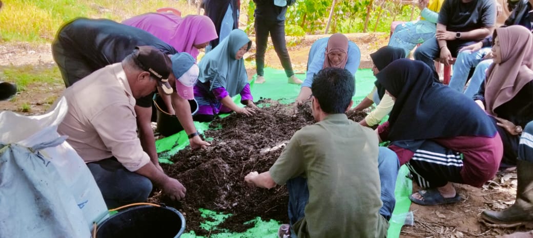 Para peserta diajarkan teknik dasar pemanfaatan limbah organik menjadi pupuk kompos yang ramah lingkungan dan bermanfaat bagi peningkatan hasil pertanian.