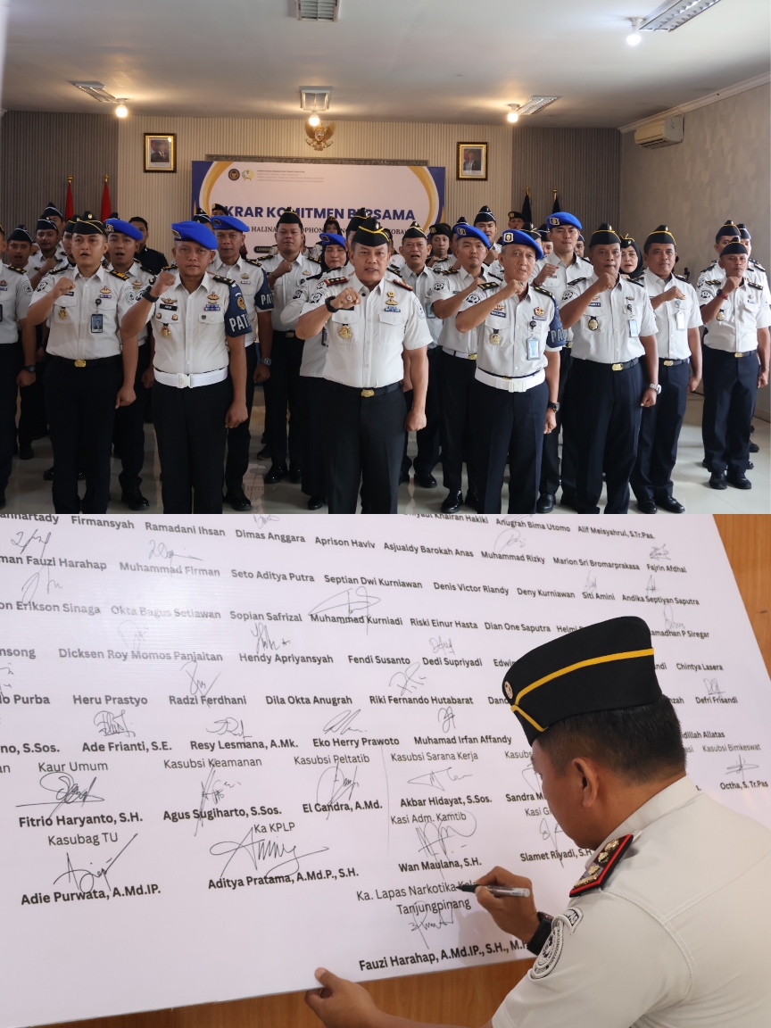 BINTAN, Anambapos.co.id – Lapas Narkotika Kelas IIA Tanjungpinang menggelar ikrar komitmen bersama, Selasa (21/04/2026). Kegiatan ini bertujuan untuk memberantas peredaran handphone ilegal, pungutan liar, dan narkoba (halinar) di dalam lingkungan lapas.