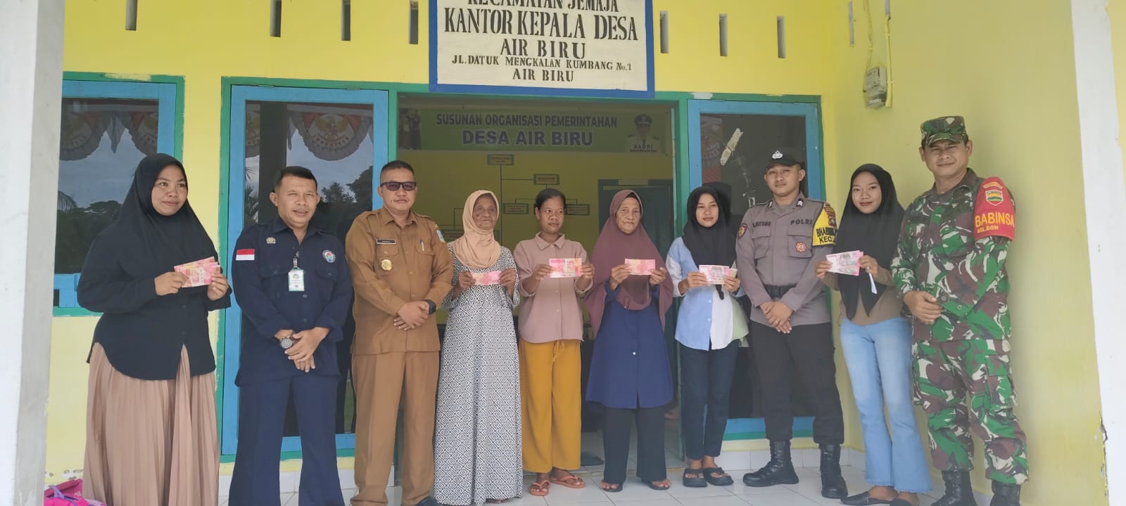 Kegiatan penyaluran yang berlangsung di Kantor Desa Air Biru ketika itu disaksikan langsung oleh, PLD air Biru, Babinsa dan juga Bhabinkamtimas Jemaja.