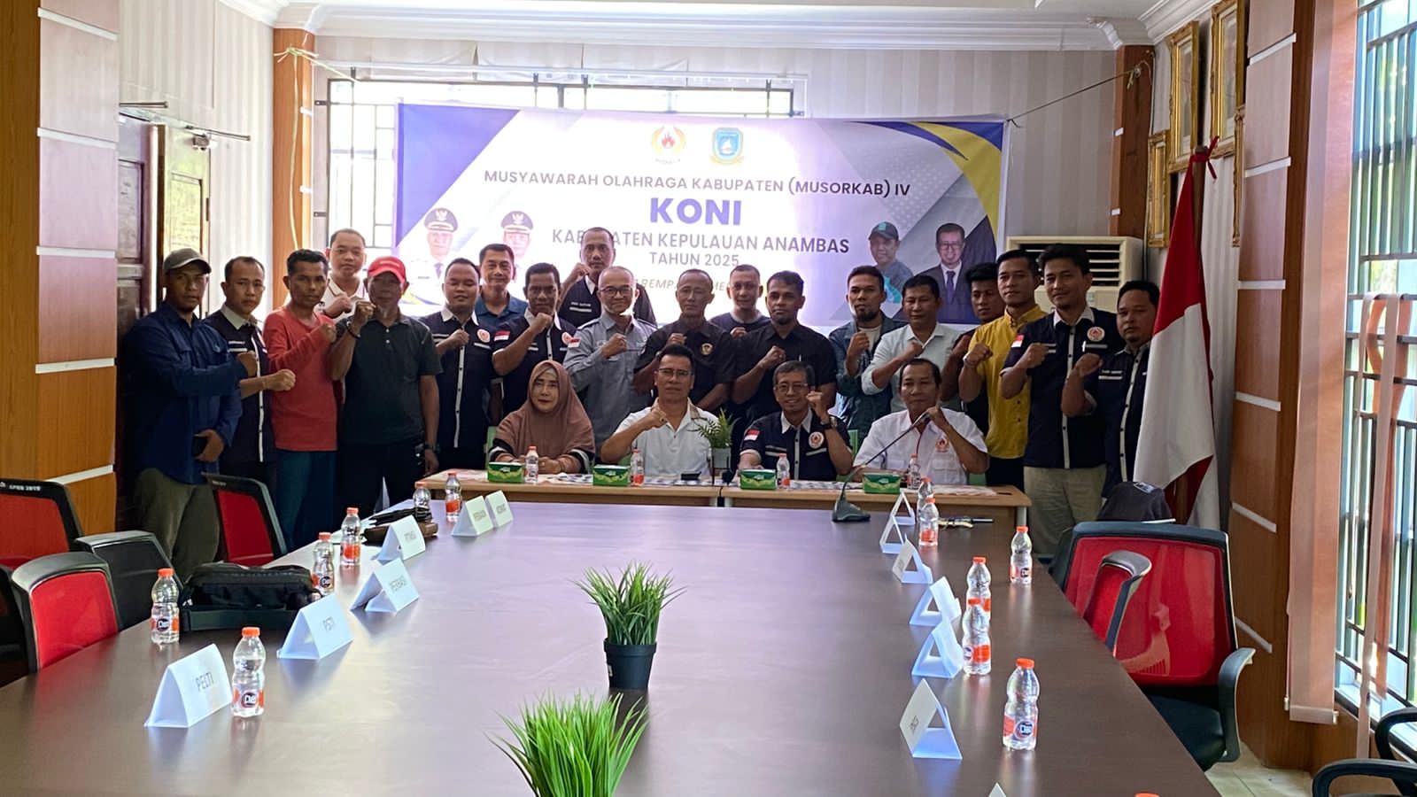 ANAMBAS, Anambaspos.co.id – Komite Olahraga Nasional Indonesia (KONI) Kabupaten Kepulauan Anambas menggelar Musyawarah Olahraga Kabupaten (Musorkab) ke-IV sebagai bagian dari upaya memperkuat tata kelola dan pembinaan dunia olahraga di daerah. Kegiatan tersebut dilaksanakan di ruang rapat Kantor Dinas Pendidikan, Pemuda, dan Olahraga (Disdikpora) Kabupaten Kepulauan Anambas pada Minggu, 25 Mei 2025.