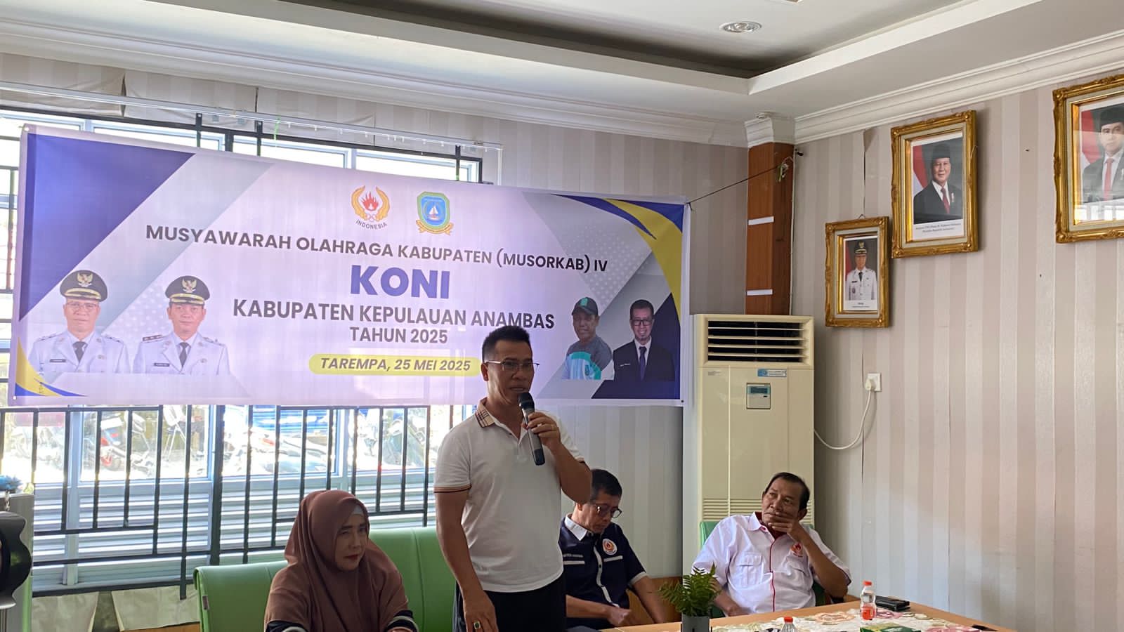 ANAMBAS, Anambaspos.co.id – Komite Olahraga Nasional Indonesia (KONI) Kabupaten Kepulauan Anambas menggelar Musyawarah Olahraga Kabupaten (Musorkab) ke-IV sebagai bagian dari upaya memperkuat tata kelola dan pembinaan dunia olahraga di daerah. Kegiatan tersebut dilaksanakan di ruang rapat Kantor Dinas Pendidikan, Pemuda, dan Olahraga (Disdikpora) Kabupaten Kepulauan Anambas pada Minggu, 25 Mei 2025.