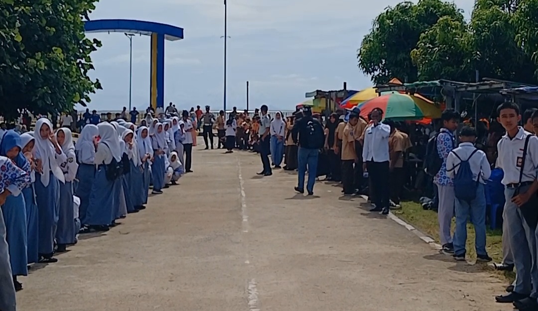 Suasana penyambutan dua Mentri RI di Pelabuhan penyebrangan oleh masyarakat Pulau Jemaja Anambas.