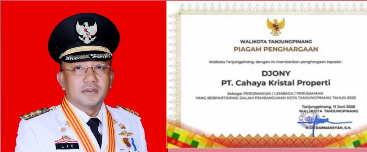 Walikota Tanjungpinang dan piagam penghargaan developer Kristal Abadi, Minggu (26/4/2026), sumberfoto: Anambaspos.co.id