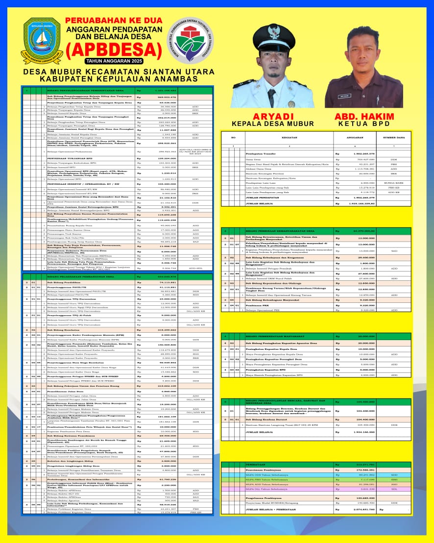 Kegiatan ini dilakukan Pemdes Mubur  bersama Badan Permusyawaratan Desa (BPD) Mubur dan perwakilan masyarakat untuk membahas dan menetapkan perubahan Anggaran Pendapatan dan Belanja Desa (APBDes) pada tahun berjalan.