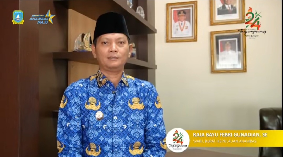 “Bismillahirrahmanirrahim. Assalamu’alaikum warahmatullahi wabarakatuh. Saya, Wakil Bupati Kepulauan Anambas, mengucapkan selamat Hari Jadi ke-24 Kota Otonom Tanjungpinang, 17 Oktober 2001 hingga 17 Oktober 2025, dengan tema ‘Berbenah Bersama Mencapai Tujuan Mulia Sejahtera’,” ucap Raja Bayu dalam video tersebut.