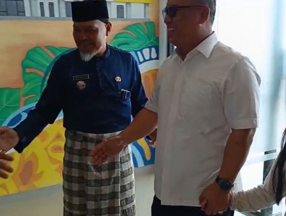 “Assalamualaikum, selamat datang pak Wagub”, kata Camat Jemaja Timur saat menjabat tangan Wagub Kepri.